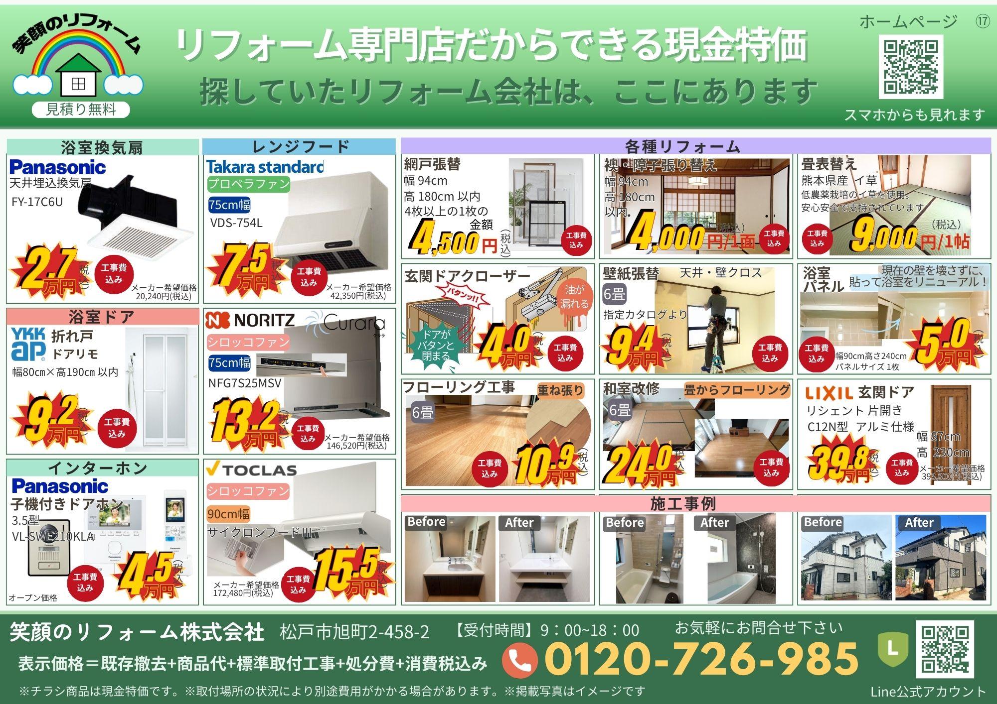 11月になり、朝晩はめっきり寒くなってきましたね。 最新のチラシが出来ましたので公開します! 年末年始は工事が大変込み合いますのでお早めにご相談下さい。 |